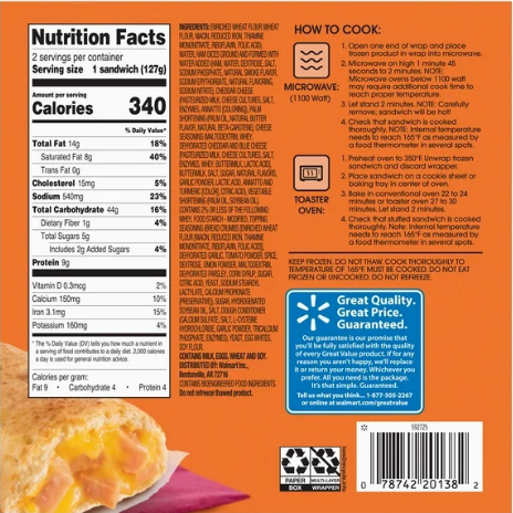 Great Value Ham & Cheese Filled Sandwiches, 9 oz, 2 Count (Frozen)