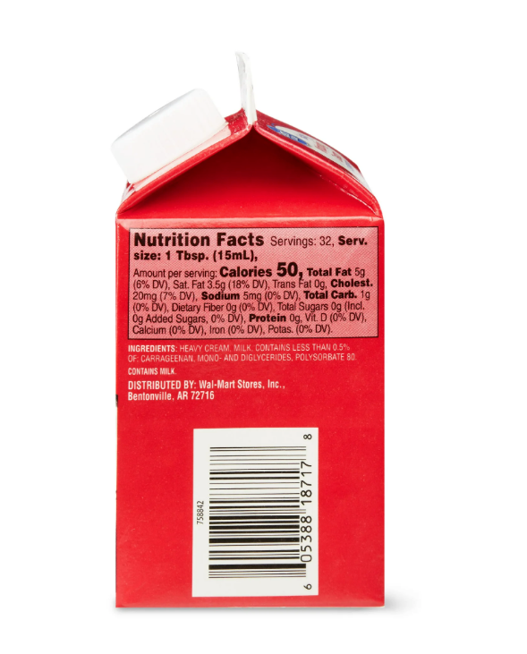 Great Value Heavy Whipping Cream, 16 oz Carton, Refrigerated