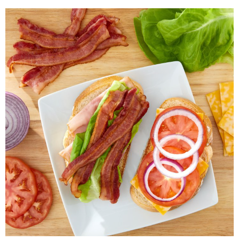 Bacon (Cured With: Water, Salt, Sugar, Sodium Phosphate, Sodium Erythorbate, Sodium Nitrite).