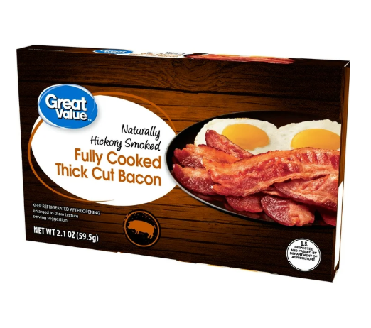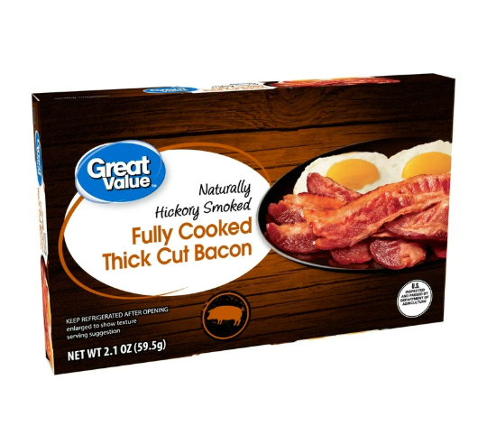 Great Value Hickory Smoked Fully Cooked Thick Cut Bacon, 2.1 oz