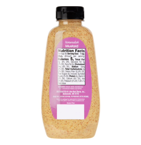 Bring the heat with Great Value Horseradish Mustard. This tasty mustard combines the sharp taste of vinegar and mustard seeds with the spice of horseradish to amp up your favorite meals. Spread it on toasted bread with turkey breast, ham, or roast beef, and top with tomatoes, pickles, and crispy lettuce for an elevated deli sandwich. Coat chicken breasts with this tangy mustard and cover in breadcrumbs for an oven-baked dinner that's both health-conscious and delicious. Mix a dollop of this horseradish mustard with olive oil, a splash of lemon juice or white vinegar, and oregano for the best salad dressing you can make at home. Great Value Horseradish Mustard will be a flavor powerhouse for your home cooking. Great Value products provide families with affordable, high quality grocery and household consumable options. With our wide range of product categories spanning grocery and household consumables, we offer you a variety of products for your family's needs. Our products are conveniently available online and in Walmart stores nationwide, allowing you to stock up and save money at the same time.