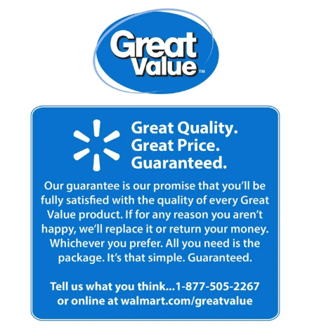 Great Value products provide families with affordable, high-quality grocery and household consumable options. With our wide range of product categories spanning grocery and household consumables, we offer you a variety of products for your family's needs. Our products are conveniently available online and in Walmart stores nationwide, allowing you to stock up and save money at the same time.