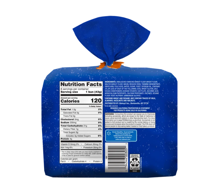 Enriched Wheat Flour (Flour, Malted Barley Flour, Reduced Iron, Niacin, Thiamine Mononitrate [Vitamin B1], Riboflavin [Vitamin B2], Folic Acid), Water, Sugar, Yeast, Soybean Oil, Wheat Gluten, Salt, Monoglycerides, Calcium Propionate (Preservative), Datem, Grain Vinegar, Citric Acid, Calcium Sulfate, Potassium Iodate, Monocalcium Phosphate, Soy Lecithin.