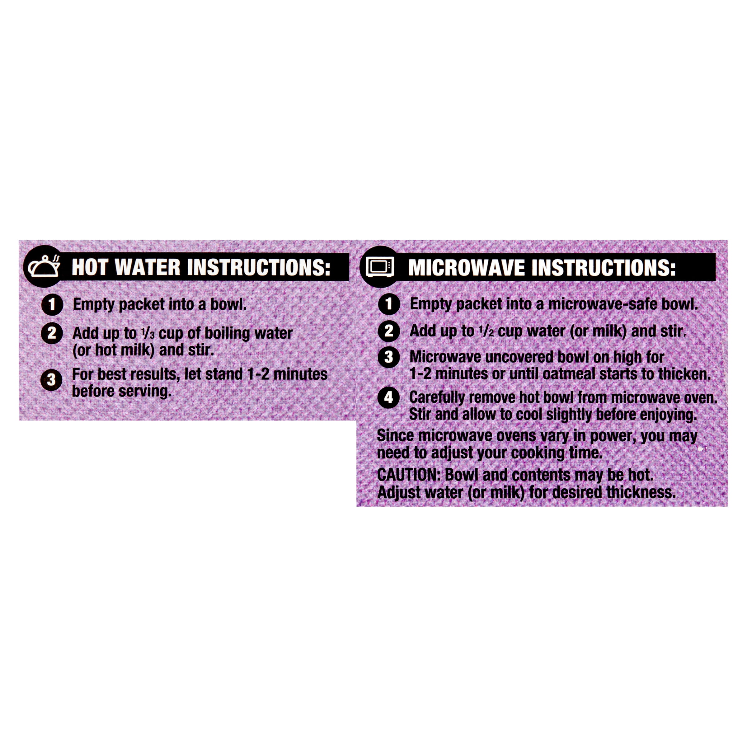 Just add water and heat for two minutes to enjoy great-tasting oatmeal.