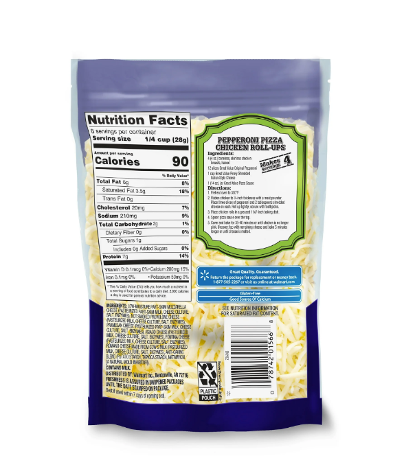 Great Value Italian Style Finely Shredded Cheese, 8 oz Bag