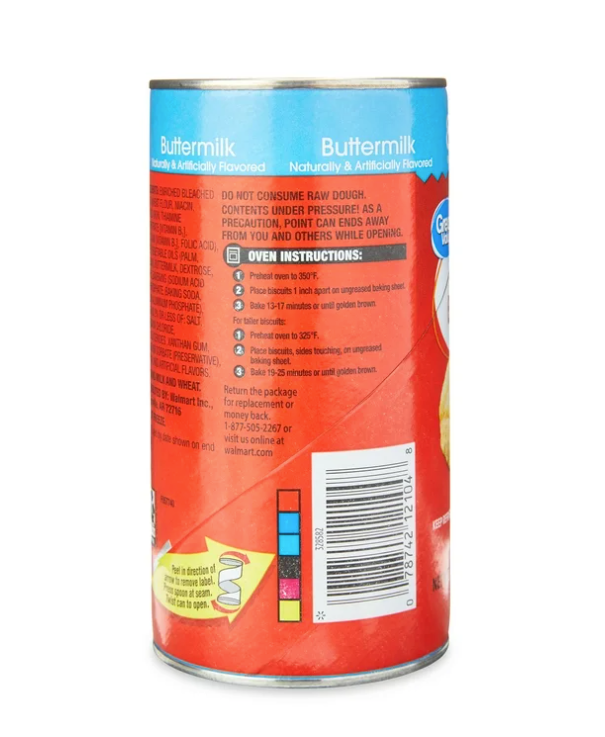 Great Value Jumbo Buttermilk Biscuits are a great addition to any meal. Perfect for breakfast with some savory sausage gravy or some eggs and bacon, or wonderful with soups and stews at dinnertime, Great Value Jumbo Buttermilk Biscuits will be the star of the show. Delicious and flaky, Great Value Buttermilk Biscuits are conveniently ready to bake in just minutes for a fresh from the oven treat. With eight biscuits per can, you can easily bake up a batch for an intimate breakfast for two, or pop open a few cans for a group gathering. Great Value Jumbo Buttermilk Biscuits are an easy way to get fresh-baked goodness straight from your oven.