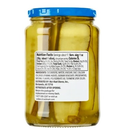 - Great Value Kosher Sliced Dill Pickles Fresh Pack, 24 fl oz Jar
