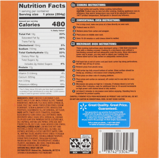 Great Value Microwavable Thin Crust Pepperoni Pizza, 7.2 oz (Frozen):