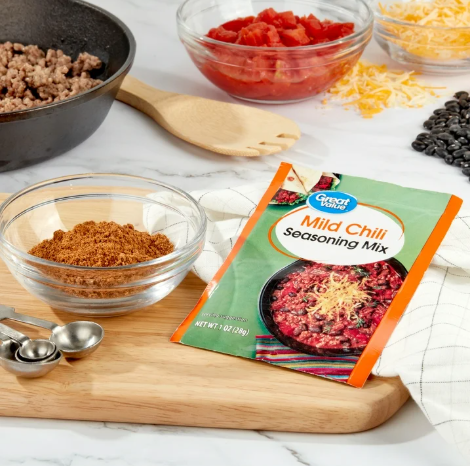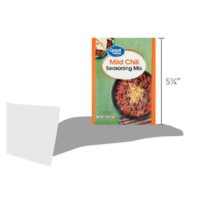 Perfect that classic chili flavor easily by using Great Value Mild Chili Seasoning Mix. Just add ground beef, tomato sauce, beans, and onion to your skillet or slow cooker to make a perfectly spiced meal. This mild seasoning is not spicy, which makes it suitable for the whole family. Chili night will be a family favorite when you include this easy-to-use one ounce packet. Your hearty chili will be packed with savory and satisfying flavor, all you need to do is top it with your favorites like cheese or sour cream. Don't stock up your spice cabinet with seasonings you won't use very often, simply keep a packet or two of this seasoning to whip-up anytime. Prepare chili for your next tailgate, family gathering, or to serve at a potluck. Enhance your next bowl of chili with delicious Great Value Mild Chili Seasoning Mix.
