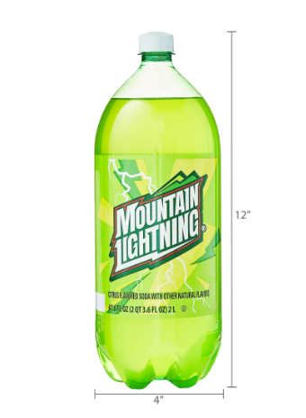 Great Value Mountain Lightning Soda Pop delivers an exhilarating flavor in every sip. Mountain Lightning stands apart from the pack with the perfect combination of refreshing citrus with crisp carbonated bubbles in every glass. This delicious beverage offers natural flavors and is a great alternative to traditional soda. It comes in a convenient two-liter bottle, making it perfect for picnics, pool parties, fun family dinners and more. Enjoy this drink by itself over ice, mix with fresh lime or lemon juice for a refreshing twist, or use it create scrumptious mixed drinks for the adults by adding the alcohol of your choice. Share a glass of Great Value Mountain Lightning Soda Pop with friends and family and transform any ordinary moment into extraordinary.