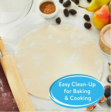 Great Value Non-Stick Parchment Paper makes for easy cleanup after baking and cooking. An indispensable kitchen tool, this parchment paper allows you to take more time enjoying your meal rather than cleaning. With 50 square feet of parchment, you can be assured that there will be enough to last you several cooking and baking occasions. Perfect for lining cookie sheets, this household staple keeps cookies from sticking, makes pizza slide off the pan effortlessly, and makes roasting vegetables a breeze. Keep your kitchen stocked with Great Value Non-Stick Parchment Paper for easy cleanup when baking and cooking.