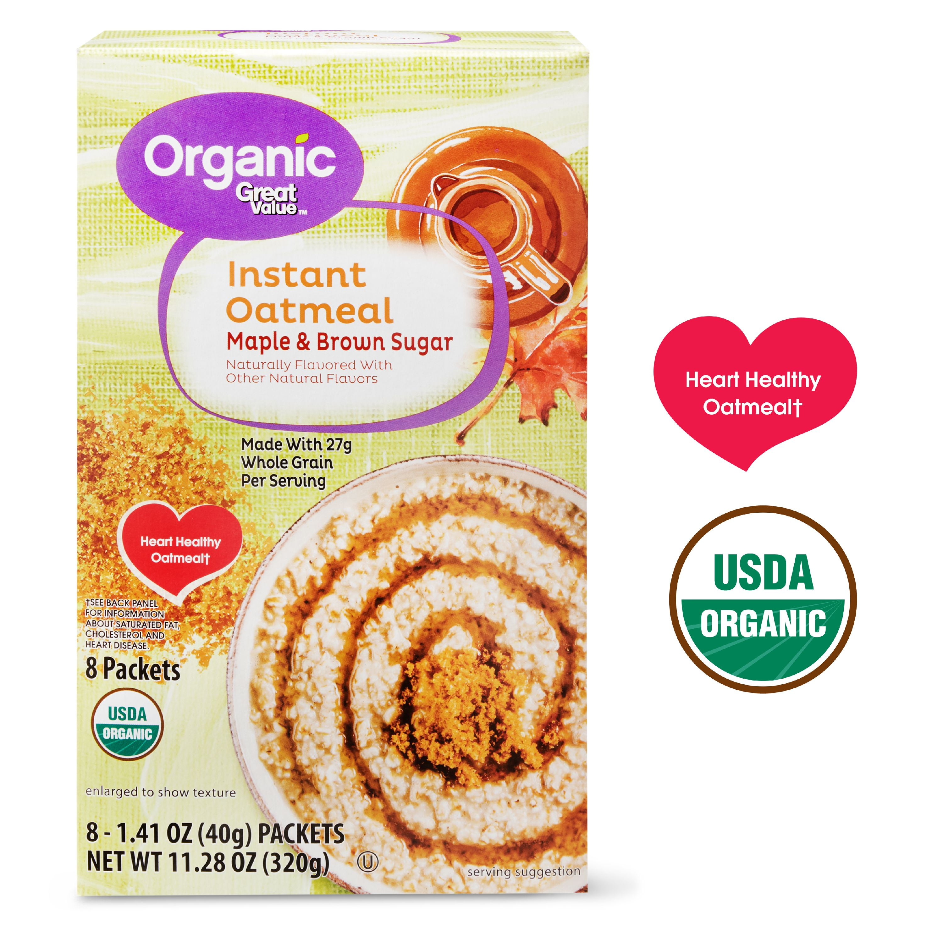 Great Value Organic Maple & Brown Sugar Instant Oatmeal, 11.28 oz, 8 Count