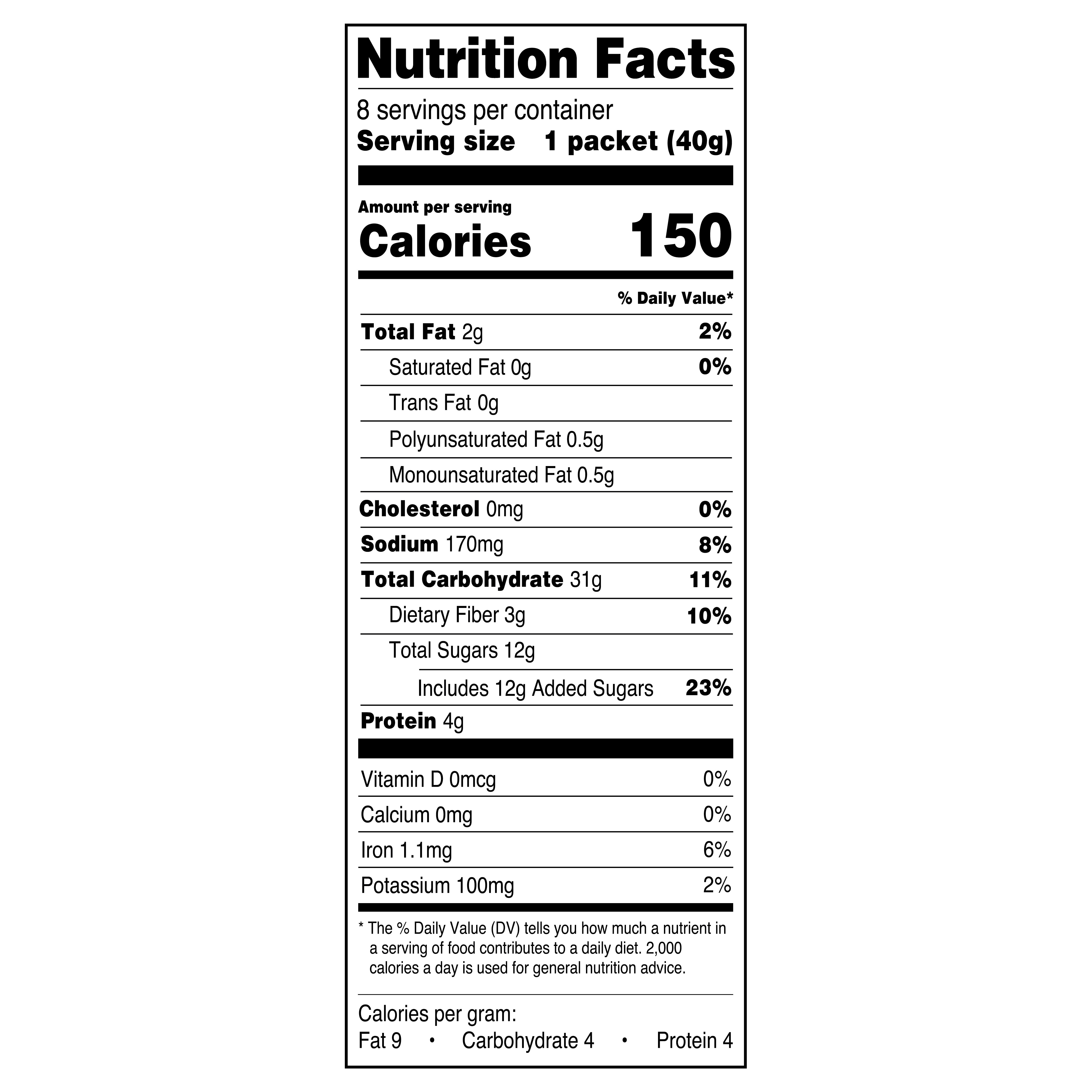 | Serving size 1 packet (40g) | |
