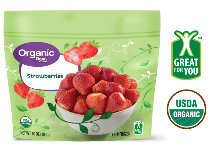 - Great Value Organic Whole Strawberries, 10 oz (Frozen)