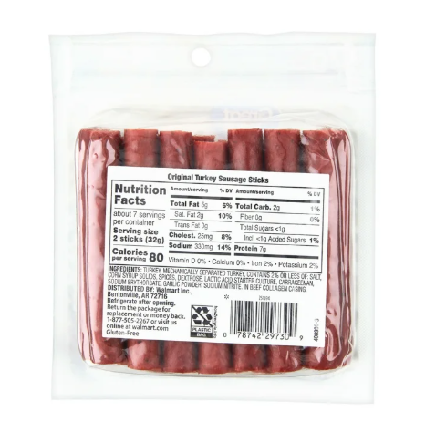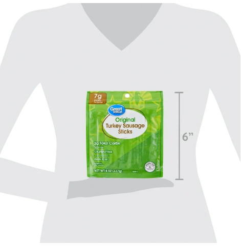 Great Value Original Fully Cooked Turkey Sausage Sticks Resealable Plastic Package, 8 oz