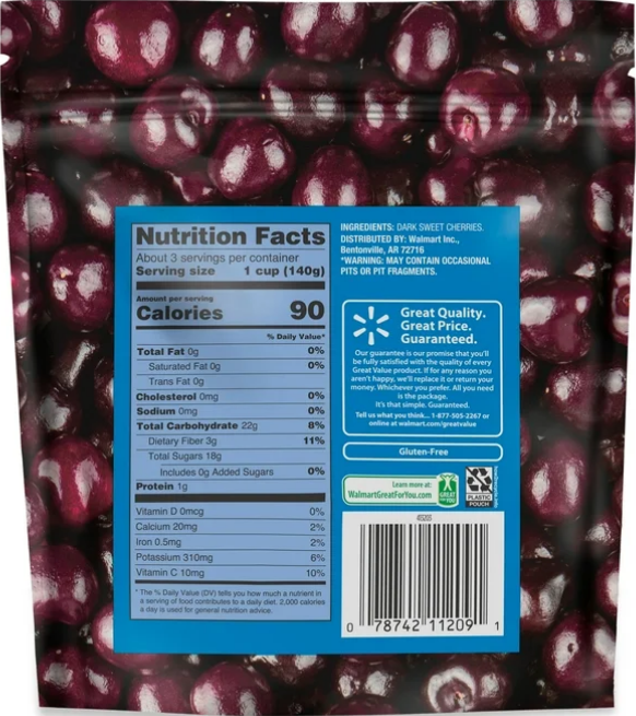 Great Value Pitted Dark Sweet Cherries, 16 oz (Frozen)