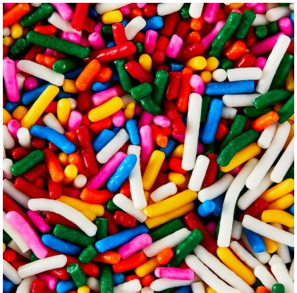 Sprinkle some of these small, multicolored sprinkles on top of your iced cakes, cupcakes, cookies, ice cream, or other goodies
