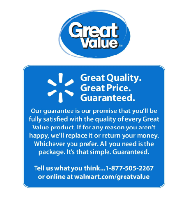 Great Value products provide families with affordable, high quality grocery and household consumable options. With our wide range of product categories spanning grocery and household consumables, we offer you a variety of products for your family's needs. Our products are conveniently available online and in Walmart stores nationwide, allowing you to stock up and save money at the same time.