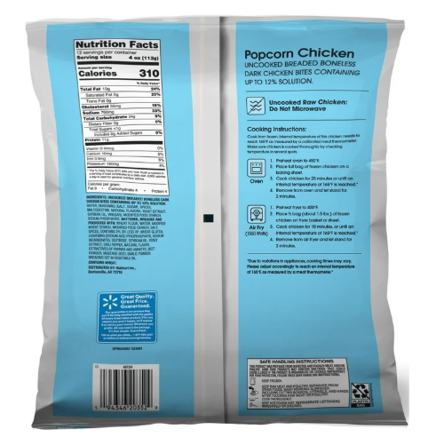 There's nothing like making an easy family meal, especially when you start with Great Value Ready to Cook Popcorn Chicken prepared to crispy, juicy perfection. These flavor-packed pieces can be cooked in air fryer or oven and enjoyed with your family. Serve them up for a game day snack or with veggies and a side for a complete meal. Addictive popcorn chicken is just minutes away with the 3lb bag of Great Value Ready to Cook