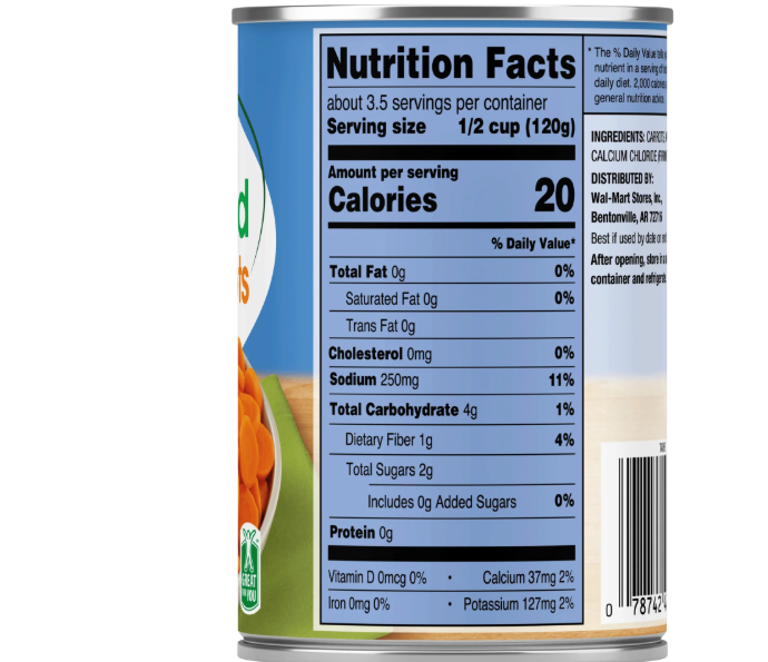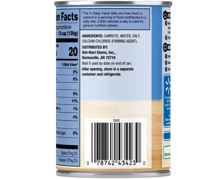 Eating your veggies just got easier with Great Value Sliced Carrots. Whether you want to make a vegetable soup, vegetable casserole, or your very own homemade recipe, Great Value Sliced Carrots have you covered. Gluten-Free with no added sugars, Great Value Sliced Carrots are canned to ensure long-lasting farm-fresh flavors perfect for delicious, easy, and quick dinner ideas. Great Value Sliced Carrots are not only fast and easy to prepare from the aluminum can but sure to satisfy. Ready in minutes, all you have to do is warm in a saucepan on the stove or heat in a microwave-safe dish in the microwave.