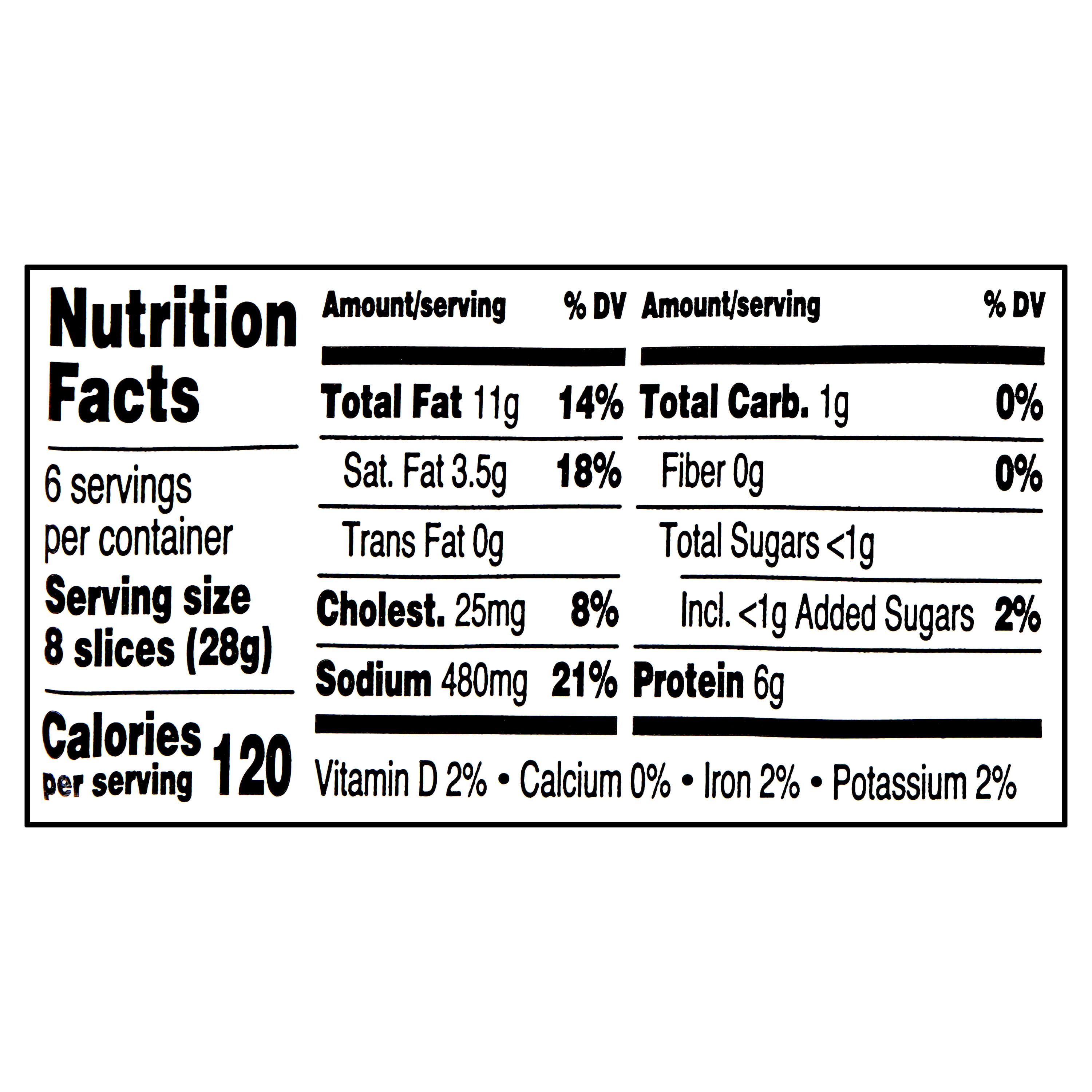 Our Great Value Sliced Hard Salami is a go-to solution for a quick snack. Pair with your favorite cheese and crackers on the go or add to a charcuterie board for your next hosted event. This Great Value Hard Salami is 6oz in size, ready-to-eat, and gluten free. 6g of protein, 120cal, and only 1 carb per 8 slices (28g) serving. Packaged in a resealable film pouch for convenience. Refrigerate after opening.