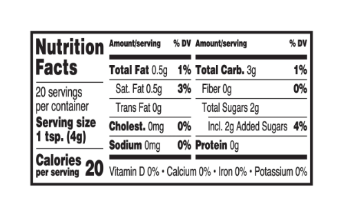 | Serving Size: | 1 tsp. (4g) |