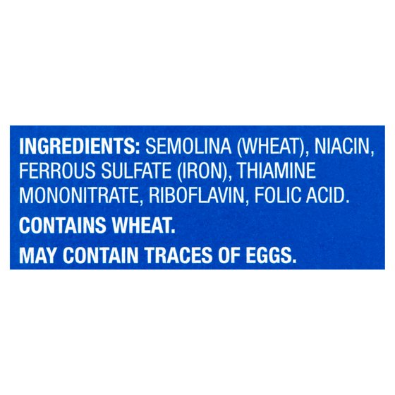 SEMOLINA, NIACIN, FERROUS SULFATE (IRON), THIAMINE MONONITRATE, RIBOFLAVIN, FOLIC ACID.
