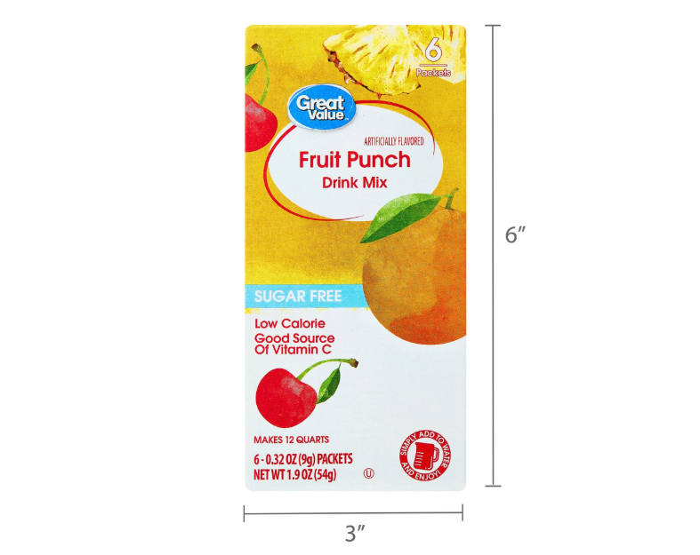 Great Value Sugar-Free Fruit Punch Drink Mix Powder, 1.9 oz, 6 Count