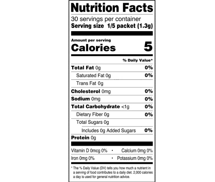 CITRIC ACID, INSTANT TEA, MALTODEXTRIN, ASPARTAME**, ACESULFAME POTASSIUM, CONTAINS LESS THAN 2% OF MAGNESIUM OXIDE, CALCIUM PHOSPHATE, CALCIUM SILICATE, NATURAL FLAVORS, RED 40, SUGAR*, YELLOW 6, YELLOW 5, BLUE 1.*ADDS A TRIVIAL AMOUNT OF SUGAR**PHENYLKETONURICS: CONTAINS PHENYLALANINE.