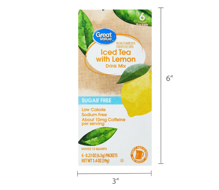 Great Value Sugar-Free Iced Tea with Lemon Powdered Drink Mix, 0.23 oz, 6 Packets