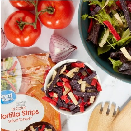 Great Value Tri-Color Tortilla Strips Salad Topping, 3.5 oz Resealable Bag