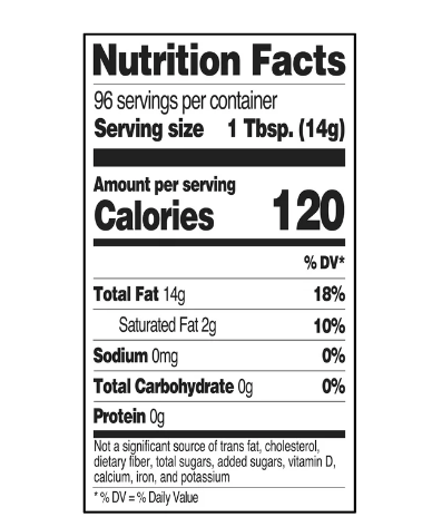 Great Value Vegetable Oil is the perfect choice for all of your cooking needs. The 48-ounce bottle contains 96 servings with only 120 calories and two grams of saturated fat per serving. Plus, the value size bottle is only a fraction of the cost of name brand vegetable oils. This versatile cooking oil contains only soybean oil with no preservatives. It is also gluten free and Kosher certified. With a higher smoke point than other oils, vegetable oil is great for frying and baking. You can also use this oil as a blank canvas for yummy salad dressings. Oil made from soybeans is rich in fatty acids, antioxidants, and essential vitamins and minerals. Regardless of what you're cooking, you can be certain you're making a healthy choice when you use Great Value Vegetable Oil.