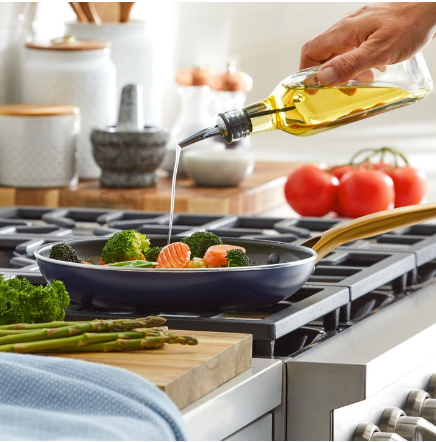CAUTION: ANY OIL WILL BURN IF OVERHEATED. DO NOT LEAVE UNATTENDED WHILE HEATING. IF OIL SMOKES, REDUCE HEAT. IF FIRE OCCURS, TURN OFF HEAT AND COVER UNTIL COOL. DO NOT PUT WATER ON HOT OR FLAMING OIL. DO NOT POUR HOT OIL INTO THIS CONTAINER AS DAMAGE MAY OCCUR, CAUSING INJURY.
