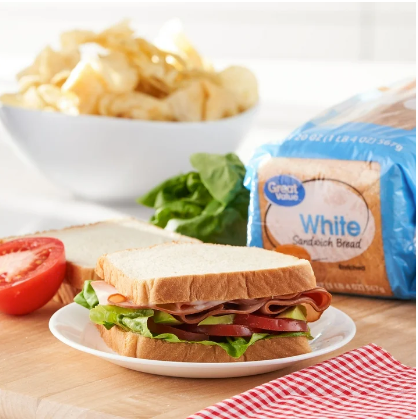 Great Value White Sandwich Bread is a soft, delicious, and convenient way to make your favorite meals even better. From morning toast to sandwiches, it doesn't get much tastier than a slice or two of this bread. Put your creativity to work by using our bread to make grilled cheese, open-faced sandwiches, a French toast bake, or bread pudding. This bread has 0 grams of trans fat and is a great source of folate, thiamine, riboflavin, and niacin. The 20-ounce loaf has 24 slices. No matter which meal or snack you are serving, Great Value White Sandwich Bread is sure to satisfy.