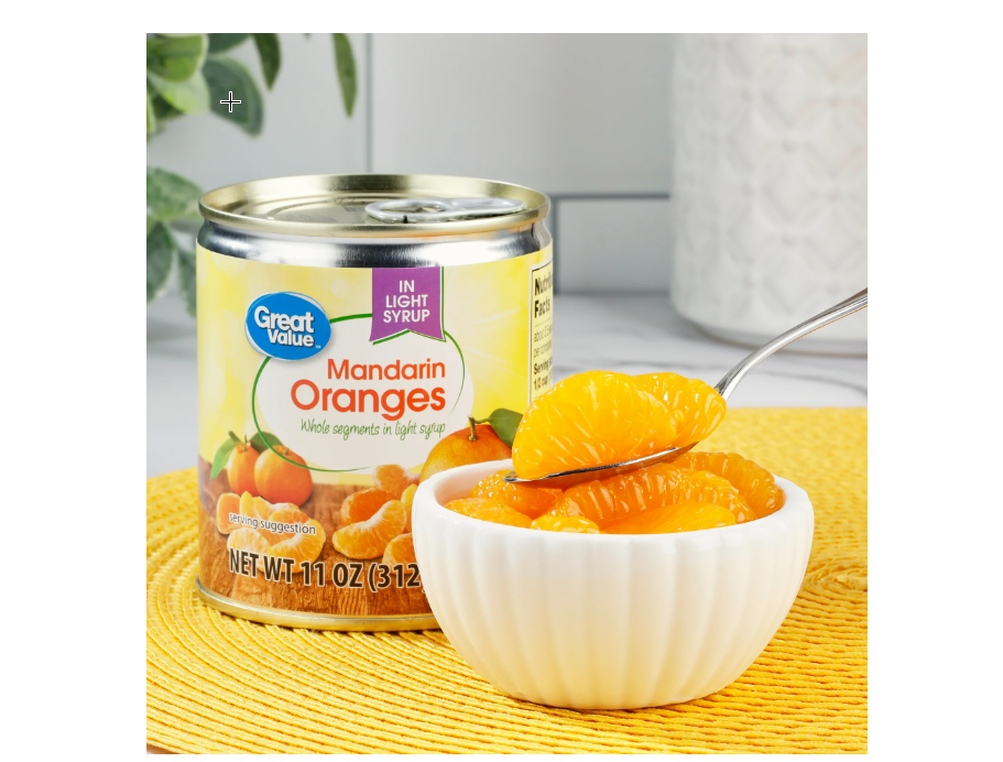 Great Value Mandarin Oranges are sliced into whole segments and soaked in a delicious sweet light syrup. These mandarin oranges are great as an addition to any dish such as desserts or salads, or they can be simply enjoyed on their own. Use them as a gorgeous and delicious decorative topping on your next cake, add them as a sweet side to your next meal, or blend into a tub of yogurt for a tasty treat. Their vibrant orange color will give a pop to any dish that your friends and family are sure to enjoy. These tasty fruit segments are packaged in a can to help maintain freshness for longer, and the pull-tab lid makes for convenient opening. Enjoy an alluring taste with every bite of the Great Value Mandarin Oranges.