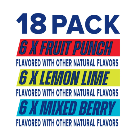 Great Value Zero Sugar Sport Hydration Drink, Fruit Punch, Lemon Lime & Mixed Berry, 12 fl oz, 18 Bottles