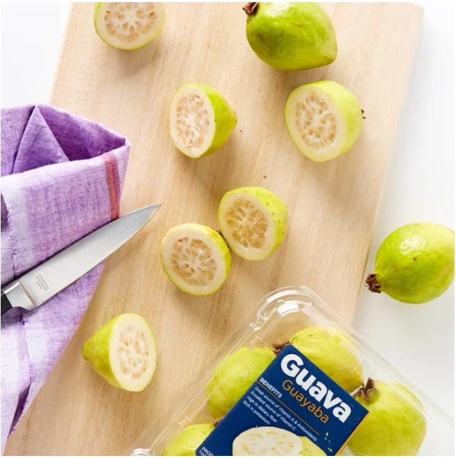 Savor the irresistible taste of fresh Guava. Guavas are an excellent fruit to add to your breakfast, lunch, dinner, or dessert. For breakfast, you can chop them up and add to yogurt or a smoothie for a sweet treat that's sure to get your morning started on a high note. For dessert, you could use them to make a creamy cheesecake, scrumptious pastries, and so much more. You can also use them to make a unique cocktail to serve at your next dinner party. The culinary possibilities are endless when you keep your kitchen stocked with fresh Guavas.