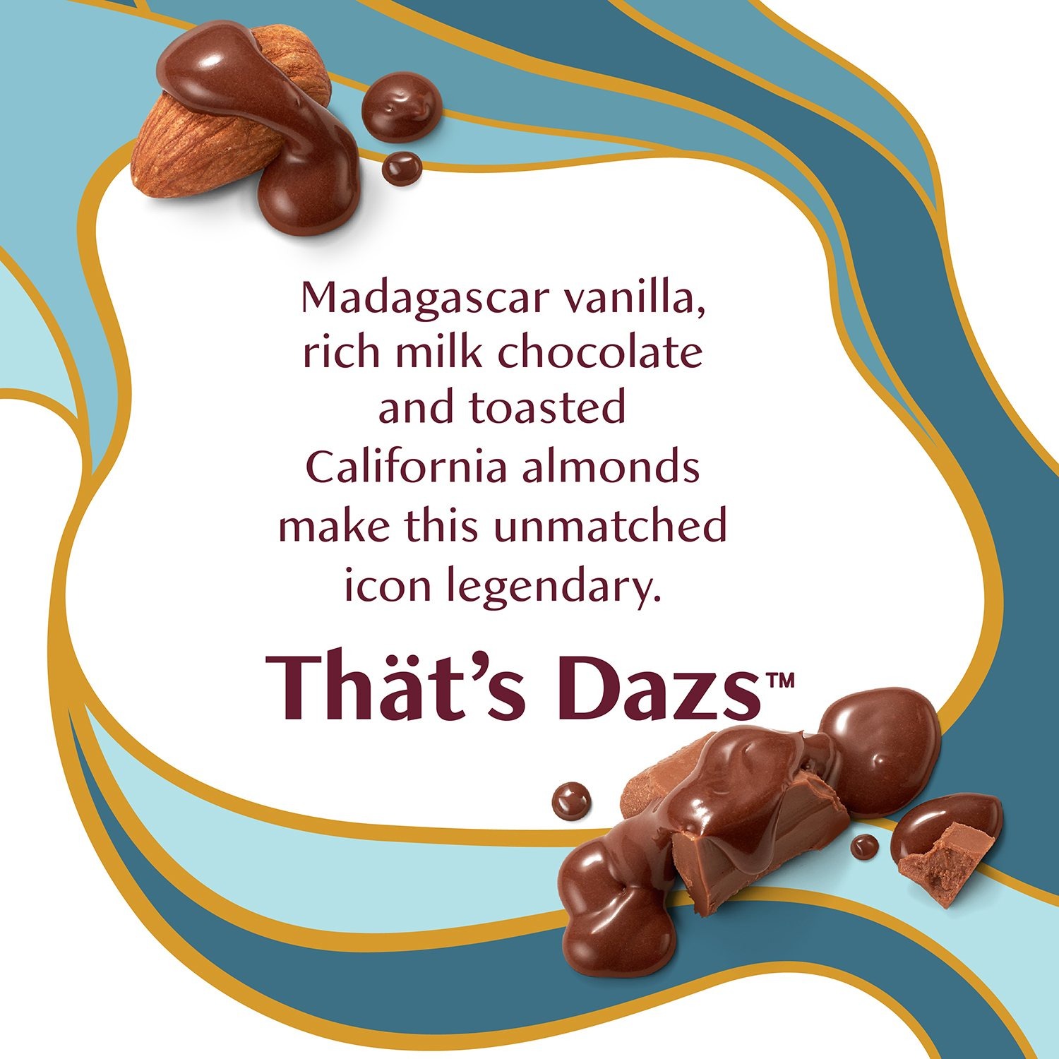 Milk Chocolate and Vegetable Oil Coating with Almonds: milk chocolate (sugar, whole milk powder, chocolate, cocoa butter, soy lecithin, vanilla extract), almonds roasted in vegetable oil (almonds, safflower oil), coconut oil