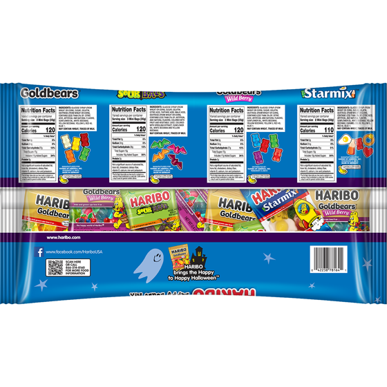 HARIBO Happy House Mix Halloween Assorted Fruit Flavor and Shapes Gummy Candy, 32oz Bag, 80ct Mini Gummy Pouches