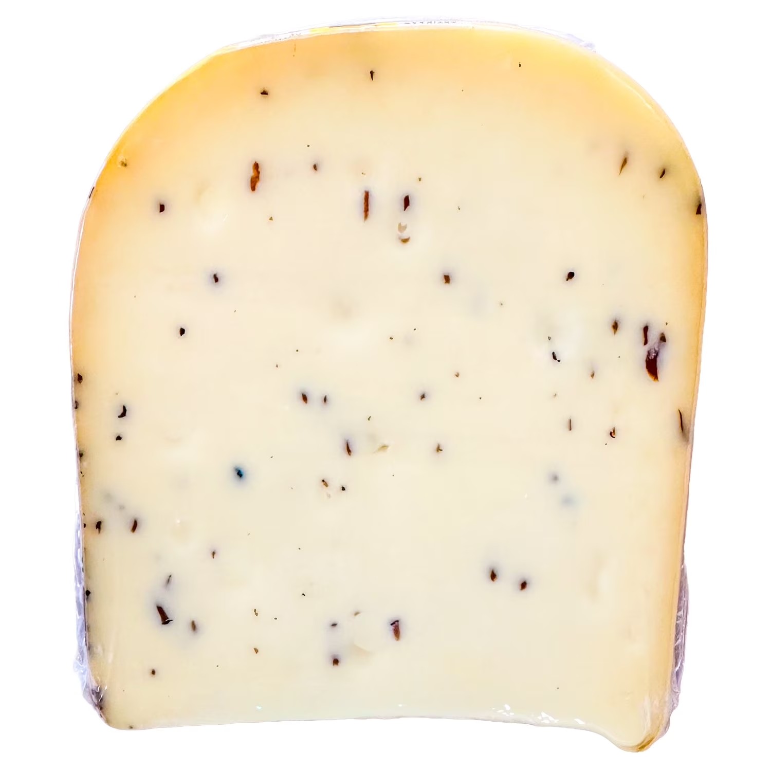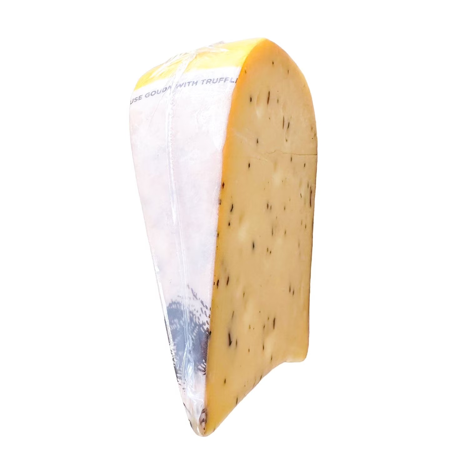 What sets this gouda apart is its generous infusion of Italian black summer truffles. Each bite delivers a luxurious and earthy flavor that complements the creamy texture of the cheese.
