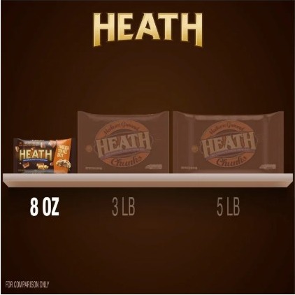 Contains one (1) 8-ounce bag of HEATH Chocolatey English Toffee Baking Bits