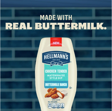 Introducing the new Hellmann’s Buttermilk Ranch Chicken Tender Mayonnaise Style Dip! Made with real buttermilk, this dip offers a creamy, tangy, and savory flavor that elevates the taste of everything it touches. Whether you’re enjoying chicken wings, tenders, fries, wraps, sandwiches, or even pizza pull-apart bread, this dip brings a delicious and satisfying twist to your favorite dishes. At Hellmann’s, we believe that food is too good to be wasted, and every meal should be relished, not rushed. Our Buttermilk Ranch Chicken Tender Mayonnaise Style Dip is made with no artificial flavors, no saturated fat per serving, cholesterol-free, and it’s a good source of omega-3 ALA. We understand that moments of joy, like a great meal, create smiles around the table and can make all the difference to a day. That’s why we’re committed to bringing out the best in pleasurable food moments. Our dip adds richness to life by creating moments of simple pleasure with every dollop, drizzle, or squeeze. Hellmann’s Buttermilk Ranch Chicken Tender Mayonnaise Style Dip is perfect for re-creating the restaurant experience at home. Pair it with chicken wings, tenders, fries, wraps, sandwiches, and more to elevate your meals and enjoy the simple pleasure of good food. Trust Hellmann’s to make good food great, and bring smiles to your table with every meal. So go ahead, indulge in the creamy, tangy flavor of Hellmann’s Buttermilk Ranch Chicken Tender Mayonnaise Style Dip and experience the joy of delicious, feel-good food. With Hellmann’s, you can enjoy every meal without worry or waste, knowing that you’re choosing a brand that values the love of food and the moments it creates.