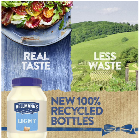 Hellmann's light mayo bottles are made with 100% recycled plastic and are committed to reducing in-home food waste by 50% by 2030 #MakeTasteNotWaste