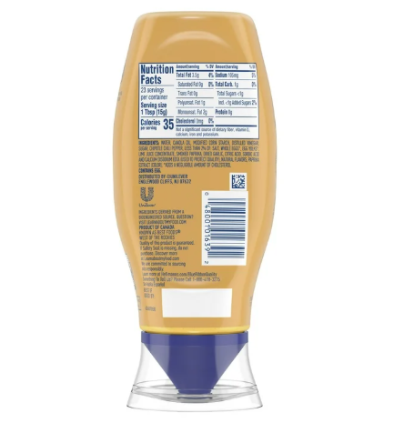 Hellmann's Chipotle Mayonnaise Dressing is a deliciously creamy condiment that brings a smoky flavor and mild heat to spice up your meals. It’s made with real chipotle peppers and is the perfect addition to shrimp tacos, grain bowls, and more. Hellmann's Chipotle Mayonnaise Dressing contains no artificial flavors, trans fat, or cholesterol, making it a healthier choice for your meals. Plus, it's a good source of Omega 3 ALA*. Deliciously Smoky, 100% Hellmann’s.