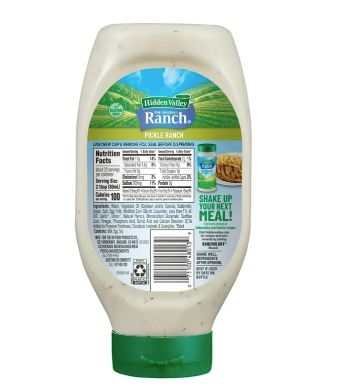 Hidden Valley Gluten Free Pickle Ranch Dipping Sauce Topping and Dressing, 20 fl oz