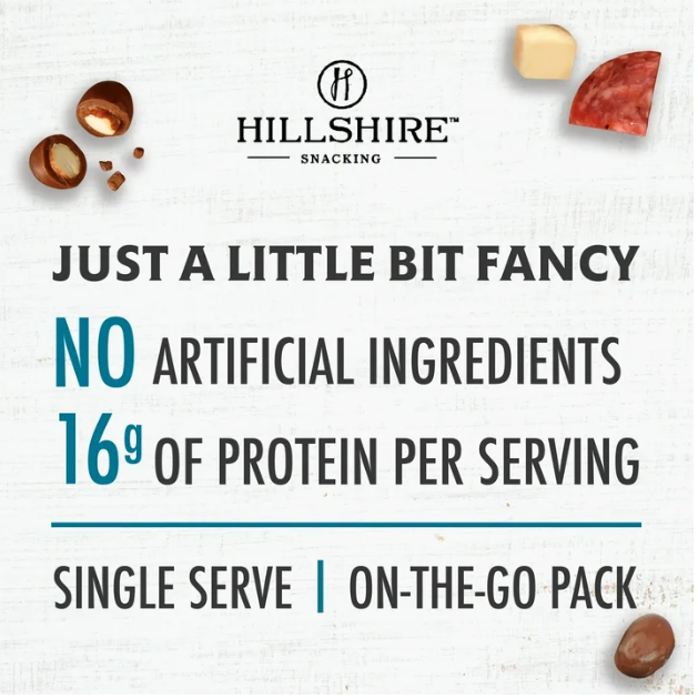 Enjoy a grown up take on snack time with Hillshire Snacking Bistro Bites Italian Dry Salame, White Cheddar Cheese and Chocolate Covered Almonds Snack Kits. With these fancy protein snack trays, complementary flavors come together to deliver a gourmet snacking experience with no artificial ingredients. Ready to eat and perfectly portioned in a single serve snack tray for snacking on the go, these Bistro Bites provide 16 grams of protein per serving. Tear open a snack pack and enjoy this tasty combination of sweet and savory with snack cheese as an addition to a quick meal. Includes one 2.8 ounce snack kit package of Bistro Bites Italian dry salami, white cheddar cheese and chocolate covered almonds. We are big believers in a little thing called snack time. To us snacking is not about rushing or mindless eating, but about turning a few stolen moments into an elevated celebration worth savoring. We are here to turn snacking into an occasion, and you are invited. Keep Refrigerated until ready to consumer.
