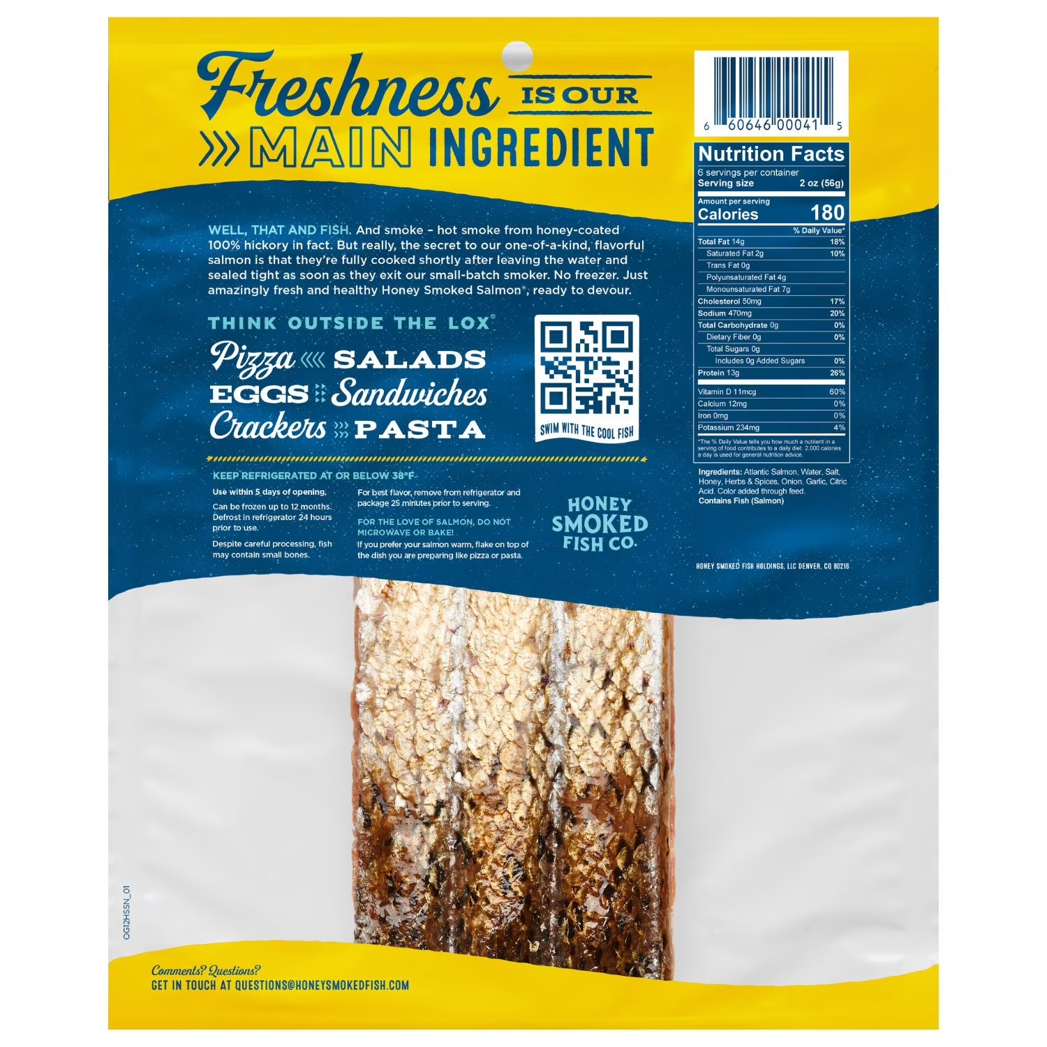 Ready-to-eat straight outta’ the bag! Honey Smoked Salmon® is fresh, never frozen—meaning our sustainably sourced salmon is ready to enjoy within days after being caught. Food this nutritious isn’t supposed to be crazy flavorful; any kale or broccoli fans? Swimming in good-for-you stuff like omega-3’s, protein and vitamin D, you can feel good about adding Honey Smoked Salmon® to any meal or snack.