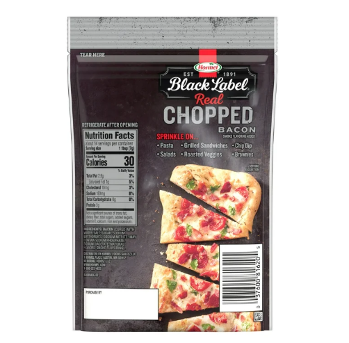 3.5 oz. package of HORMEL BLACK LABEL Real Chopped Bacon included