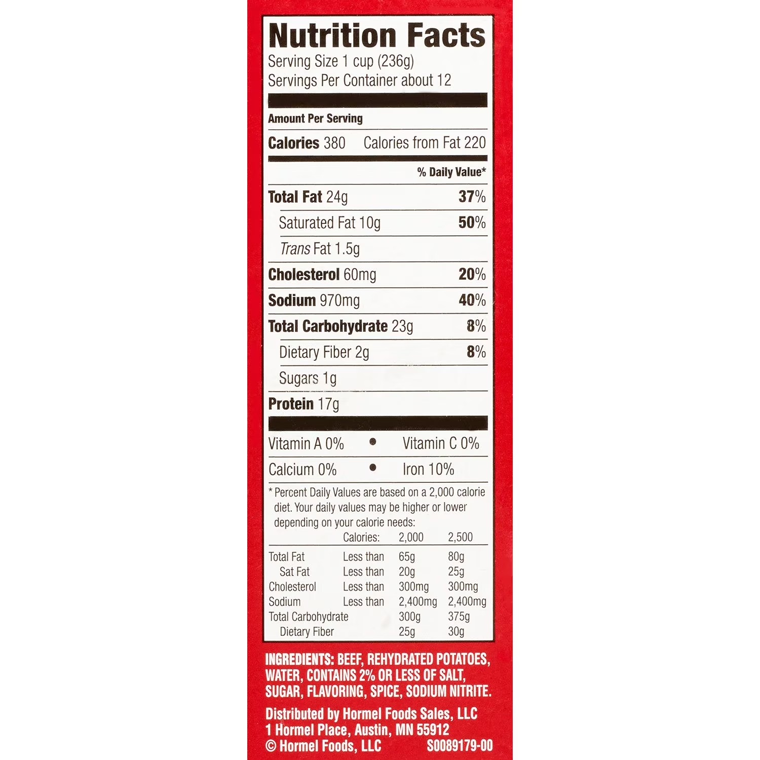 Experience the timeless, home-cooked flavor of HORMEL MARY KITCHEN Corned Beef Hash at your breakfast table. This delightful dish is packed with tender chunks of corned beef, diced potatoes, and a blend of savory seasonings, offering a taste that's reminiscent of a hearty, home-cooked meal. It's the perfect way to start your day or enjoy a relaxing brunch with loved ones.