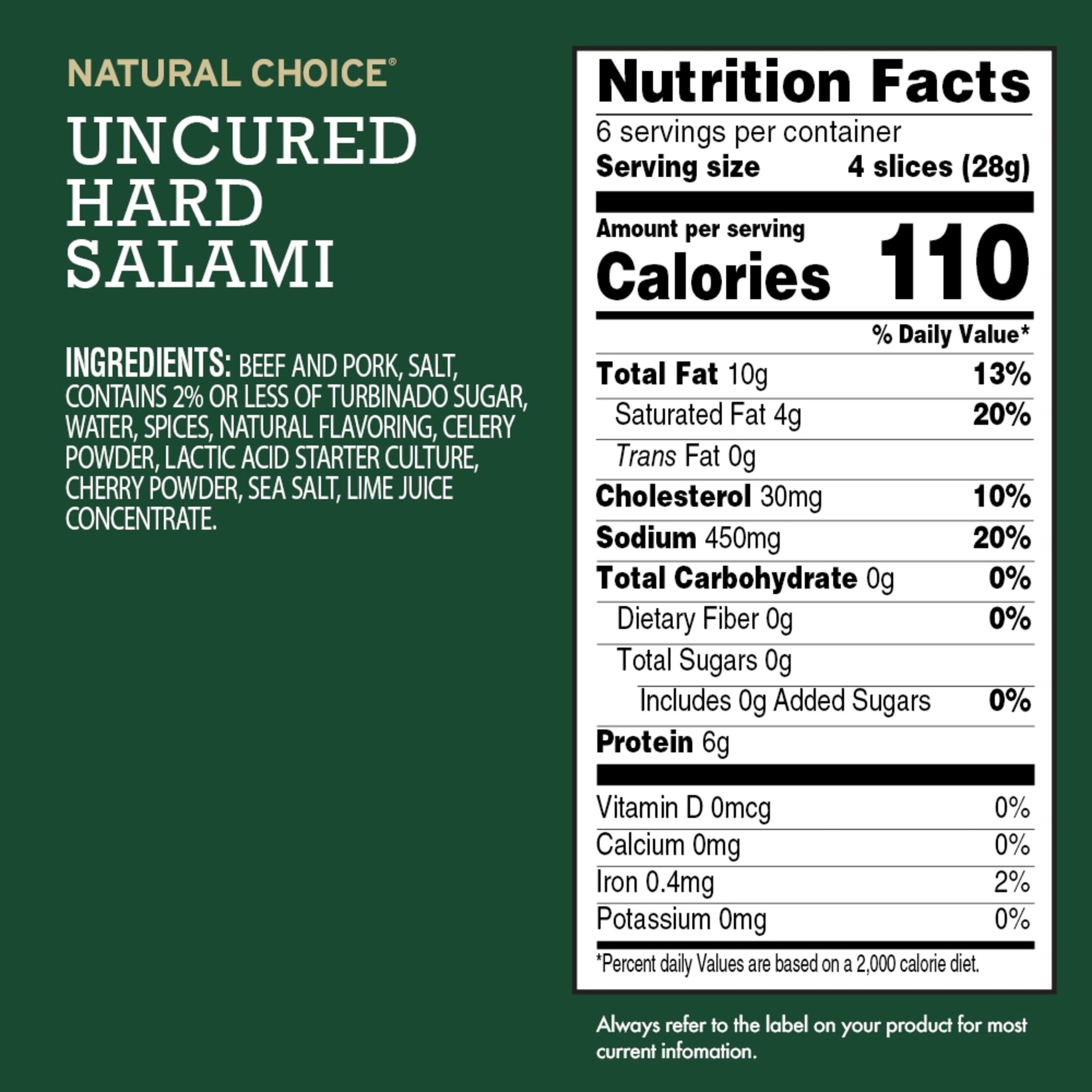 Includes one 6 oz package of HORMEL NATURAL CHOICE Uncured Hard Salami